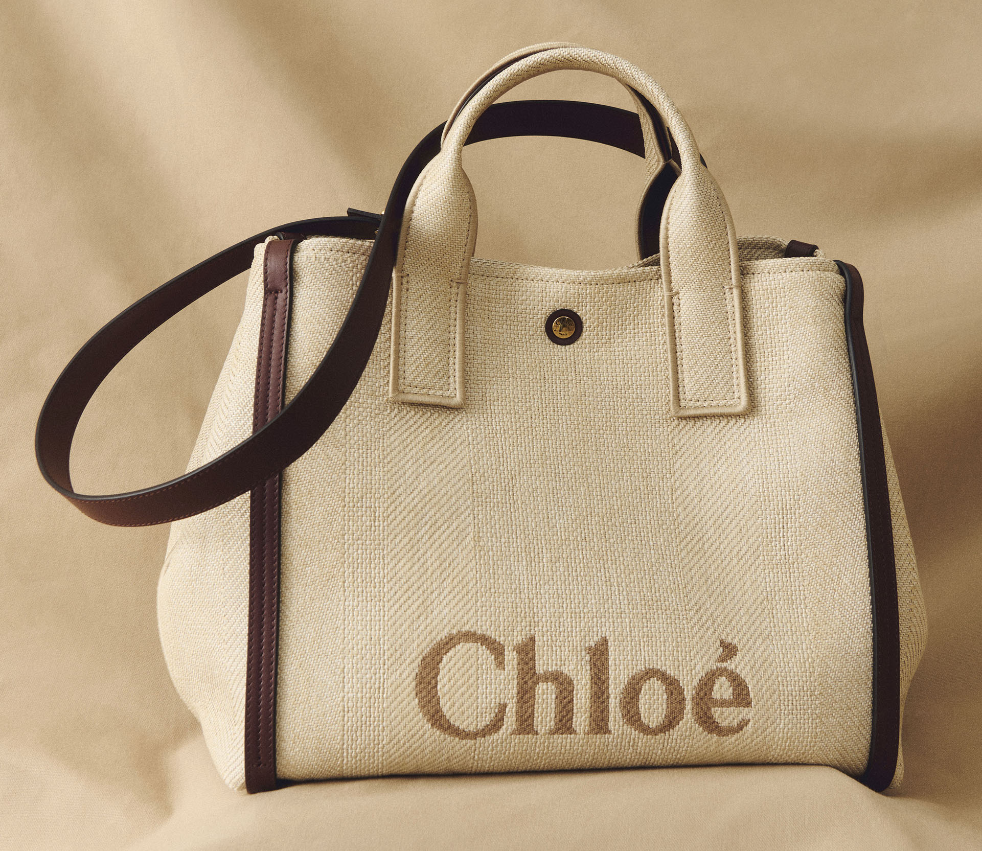 A perfectly proportioned, versatile carry-all that seamlessly blends form and function for both travel and everyday life. Made from recycled GOTS-certified cotton jacquard, it features elegant leather handles and trims, and is accented by a discreet Chloé logo. The adjustable size ensures it adapts effortlessly to life on-the-go.
